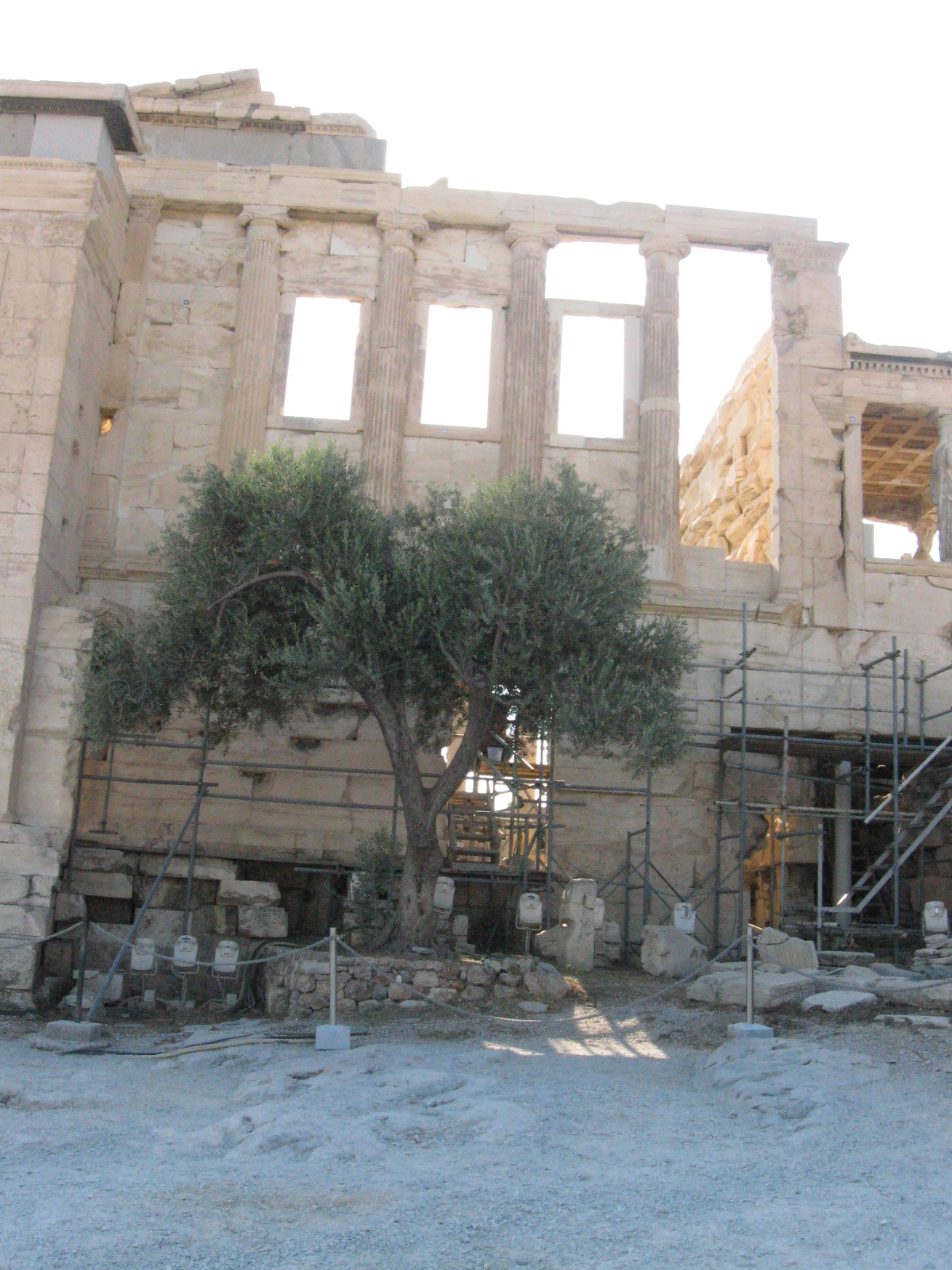 Caption The south end of the Erechtheion with "Athena's Olive Tree" Location Greece Erechtheion Athens Fuzzy Date July 2013 Picture File IMG_3054.JPG