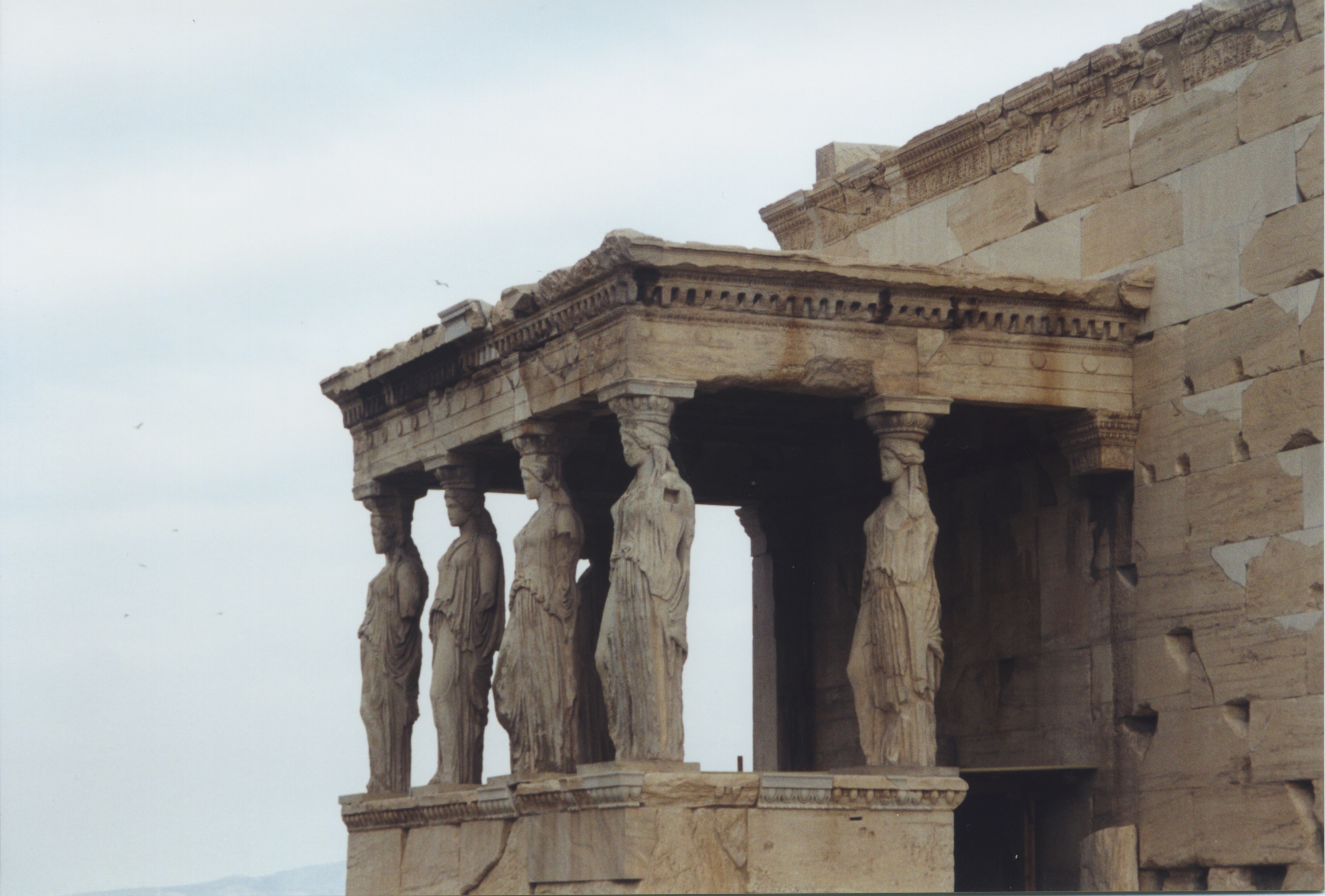 Location Erechtheion Acropolis Athens South Side Subject Karyatids Temple Fuzzy Date Dec. 8, 2000 Picture File ksteed 45.jpeg