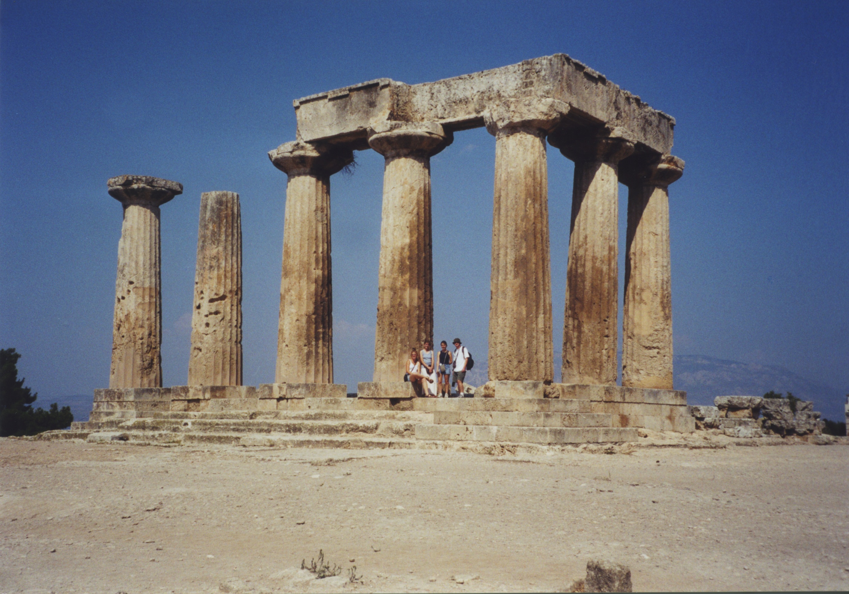 Caption Jenny Nilson, Kathryn Seidl, Cindy Davies, Joe Hamlin Location Temple of Apollo Corinth Ancient Corinth Date Taken Saturday, September 16, 2000 - 12:00 Subject Temple Apollo Corinth Ancient Corinth Picture File ksteed 32.jpeg