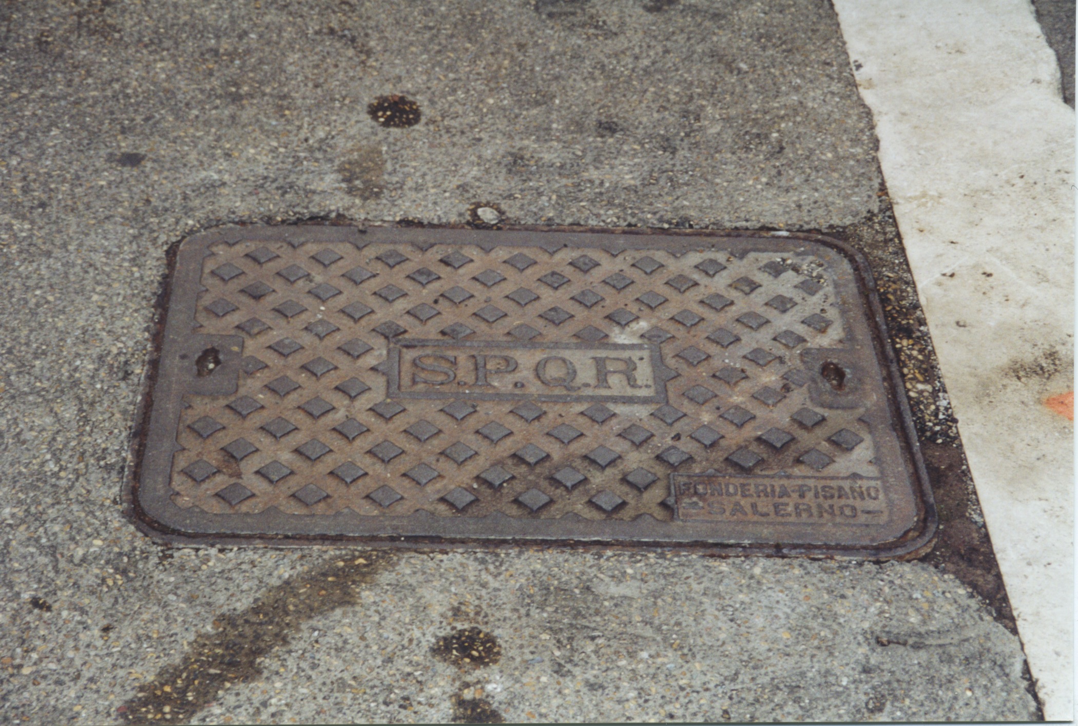 Location Rome Subject Utility Cover S.P.Q.R Whimsy Fuzzy Date Oct. 28, 2000 Picture File ksteed 436.jpeg